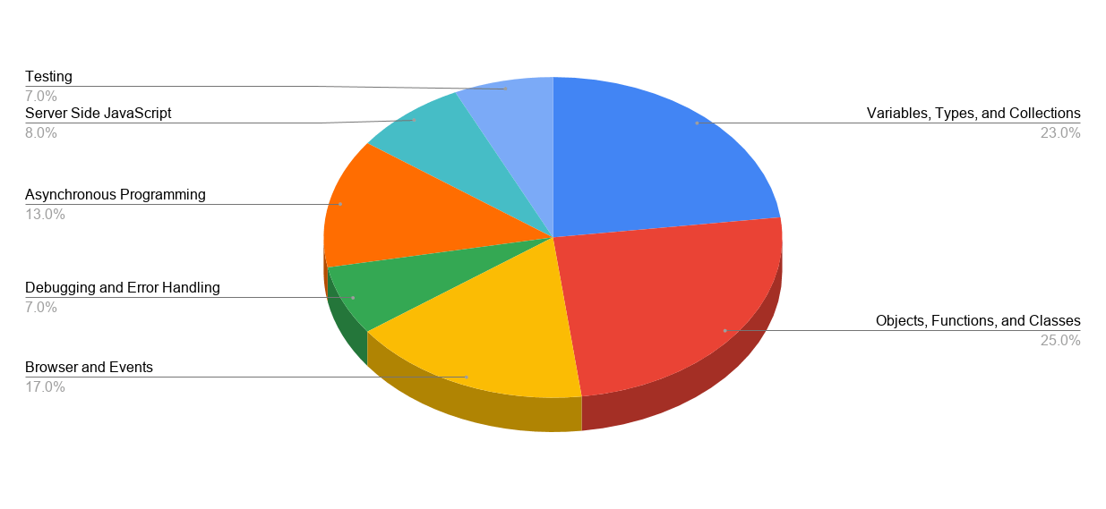 The following are the core topic areas of the Javascript Developer certification and what you’re expected to know: