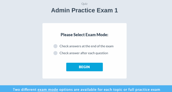 Test yourself with complete practice exams, focus on a particular topic with the topic exams or try the question bank exam. Find out if you are ready for the exam.