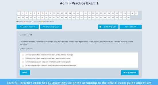- 2 full practice exams of 60 questions each, same as the actual exam