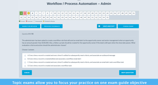 - Topic Exams - practice questions on a specific topic to ensure that you have grasped it
