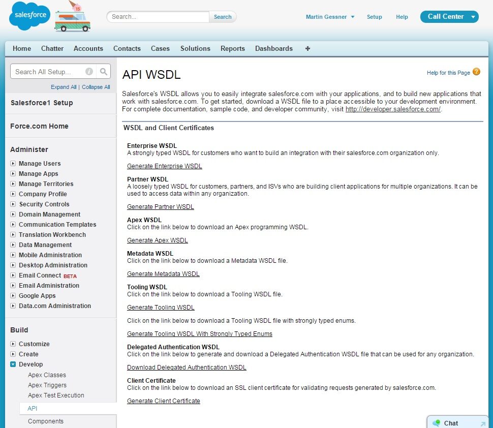 Let us take a look at one of the enterprise WSDLs. Navigate to Setup | Develop | APIs to see this screen: