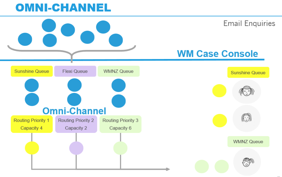 - Omni- channel had just been released as a configurable feature and identifying the difference between configuration and previous customization experience was a small challenge when initially discussing their options. Other projects were sighted as having the ability to manage case ownership but those projects had been customized and case owner was assigned by code.