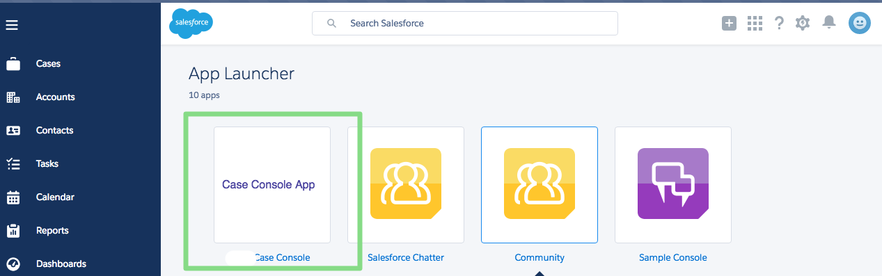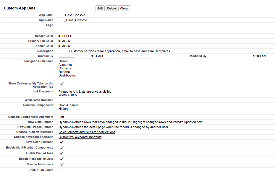 Setup> BUILD> Create > Apps > Case console select “edit”