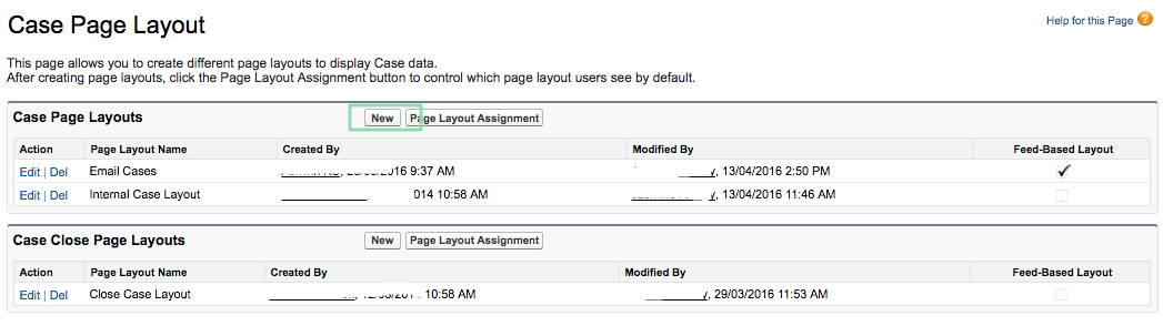 Settings>BUILD>Customise>Cases>Page Layouts > select new