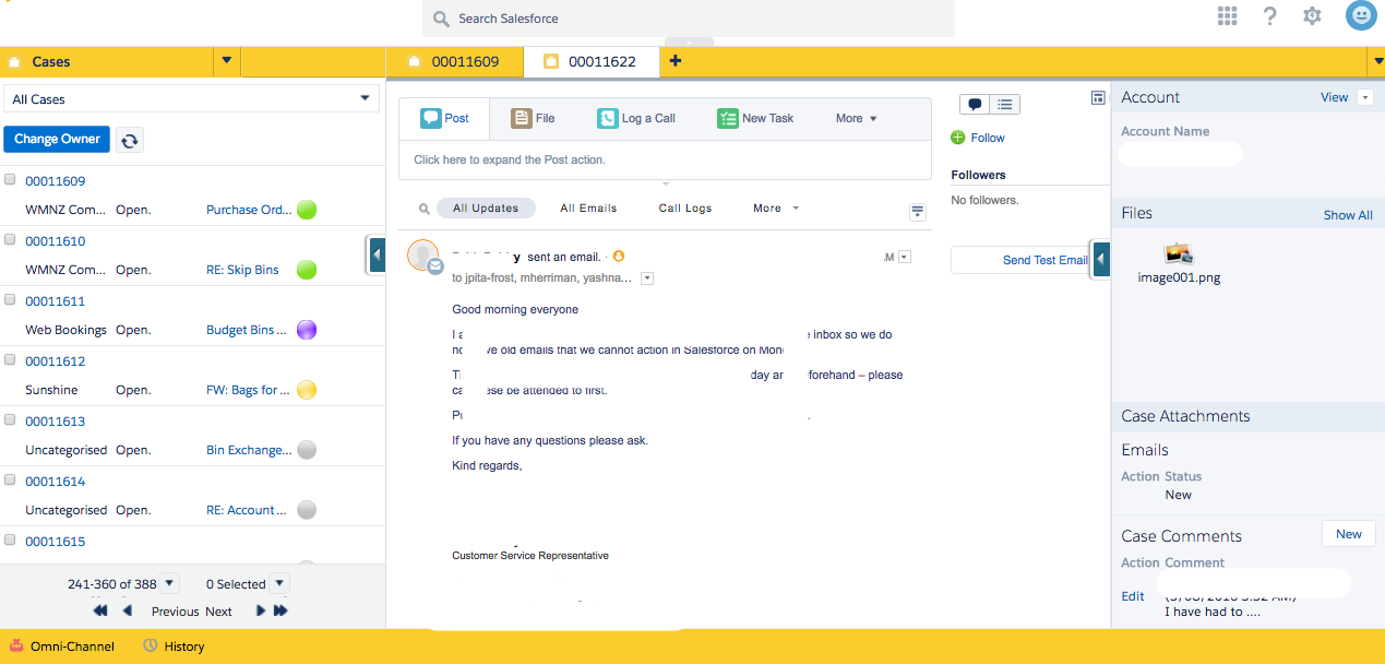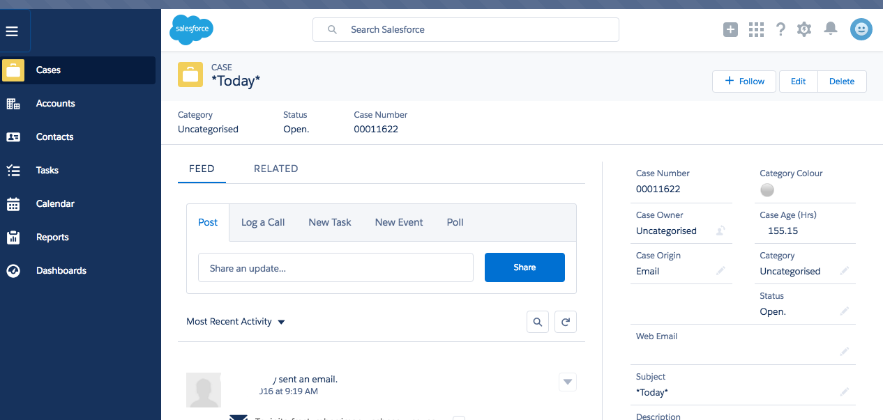 The email layout in lightning has been updated to save screen space; this feature is relevant to this project as the focus is on email to case enquiries.