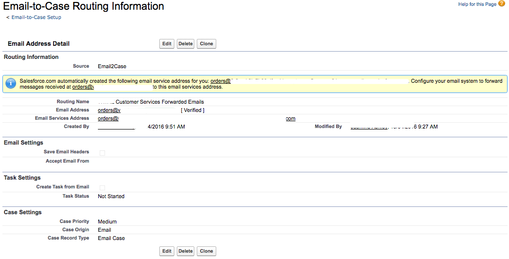 Case Record type was set to “Email Case” to allow for accurate reporting when the solution went live. Those cases that are routed through email to case were called “Email case” and those cases created by the user were called “Manual Cases”