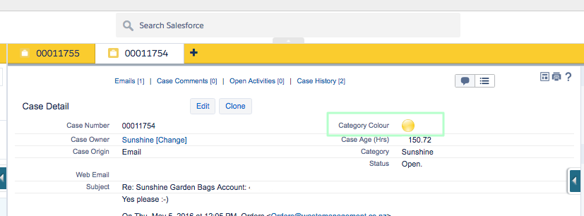 A simple workflow was created to allow for a visual colour to display on the case layout, to allow the user, who may be working across different teams, to identify what case category they were working on.