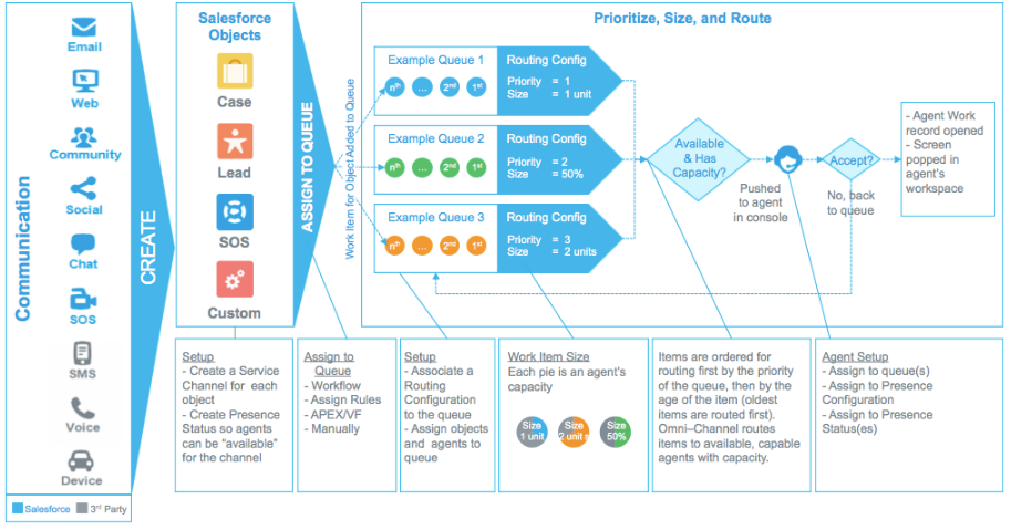 When the feature is enabled – a busy diagram that explains a full set up, referencing the different objects within salesforce.com, ‘help’ also walks you through the set up process with omni-channel, this is useful but if you are new configuring it may help to use something that has more of a focus.