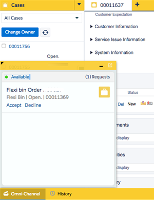 The omni-channel widget allowed for users to accept and decline cases, the information displayed on the widget can be modified through the compact layout on the object.