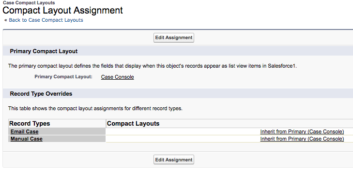 Setup> BUILD > Customise> Cases > Compact Layouts
