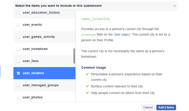 Also, if you want to gain access to other user information through your Facebook App, you can Submit a Request to Facebook through your Developer Dashboard for the items you are interested in. For example, you can request to get access to the user_location attribute in Facebook so that you can store this on the user and show them relevant content on your community.