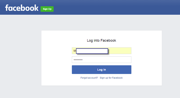3. Once you have clicked login you will then be forwarded to Facebook to login page: