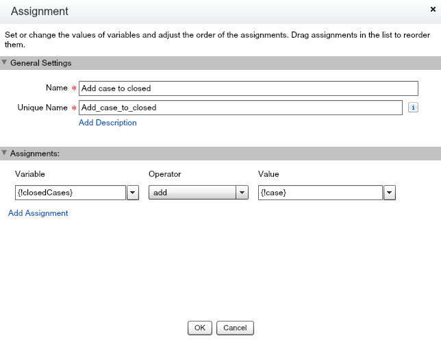 Next, another Assignment action is used to add the case records that were closed to a collection.