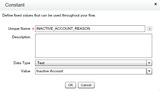 ACCOUNT_ACTIVE_NO, INACTIVE_ACCOUNT_REASON, STATUS_CLOSEDConstants contain static values that are referred to later on. For example, they contain the Case Reason value used when updating the Cases.