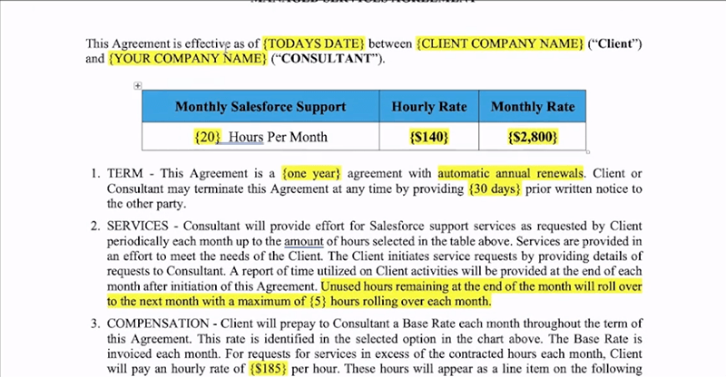 After finishing a project with a client, it’s important to keep them as a long term client. This will save you from continually having to look for new clients, and helps them as they don’t have to find a new consultant every time they need work done. You offer ongoing defined support services to the client which will provide you with a stable ongoing monthly income. That’s where a managed services agreement comes into the picture, and the course includes a template and advice on how to put this in place.