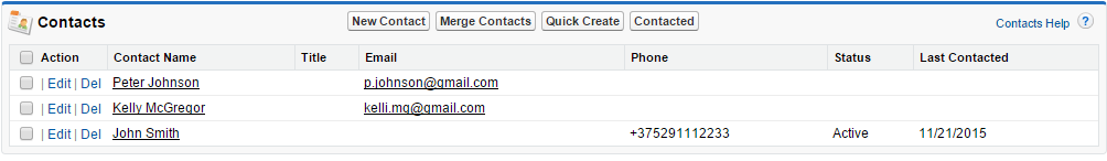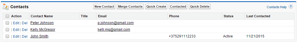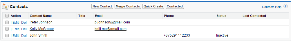 - Activate a set of selected contacts. The Status field should be set to “Active” and Last Contacted field should be set to today’s date.