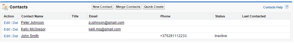 Enter the name for new contact record. For example, John Smith and hit OK button. The page will be reloaded and a new contact record will appear in the related list: