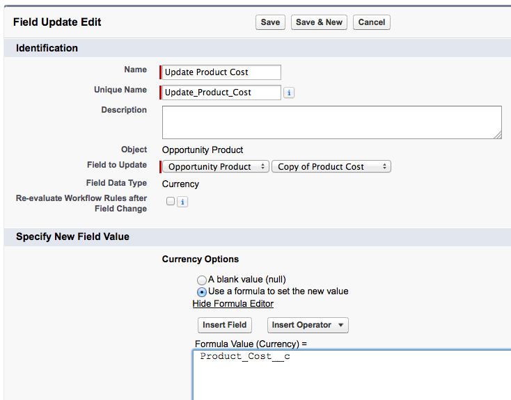 Now as mentioned earlier, this solution may not work for all situations. The reason being, that the value of the formula field is copied when the opportunity product record is created or edited. That means, for example if the product cost is updated after the product is added to the opportunity, the formula field will show the updated value, but the custom field that we added for use in the rollup summary will not.
