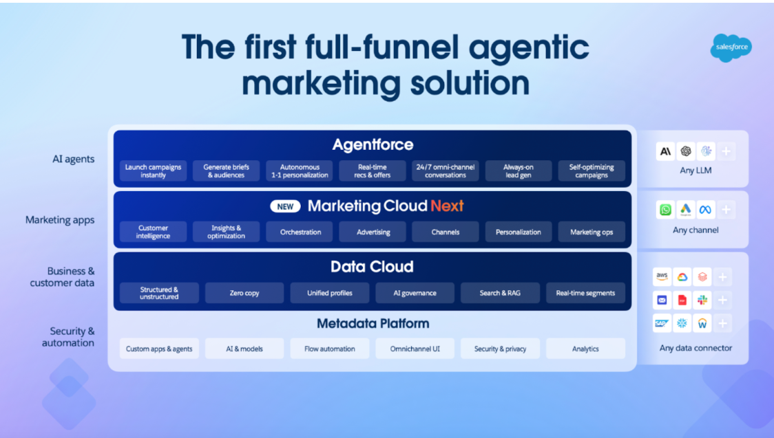 Marketing Cloud Next is Salesforce’s next big thing for marketing, designed to abandon those old “do-not-reply” emails and make every interaction feel personal. It’s powered by Agentforce, Salesforce’s AI that works like a teammate, handling repetitive tasks so marketers can focus on strategy and creativity.